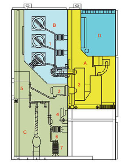 ເອ. Circuit breaker compartment B. Busbar compartment