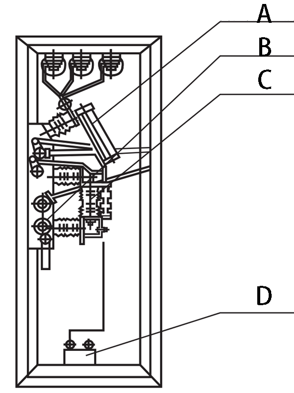 ![]() | Figure 2 ເອ: Insulator B: Through the wall casing C: Operating mechanism D: Grounding switch |